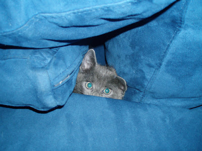 haha MOmma is a sucker for peek-a-boos! Be carefuls though that someone does not sit on you! When Momma woz little she had a little mouse that escaped and she searched and searched till one day we all smelt something... I do not need to go further just remember hoomans so not look underneath the pillows before they sits down :(